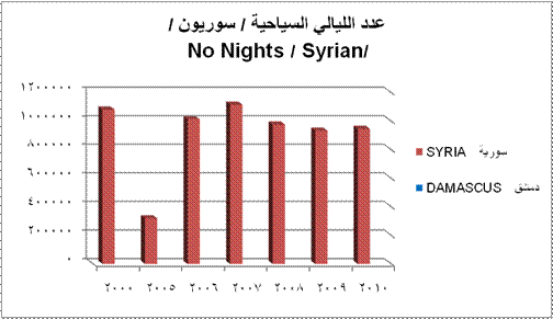 | عدد الليالي السياحية / سوريون / | 501666 | 144358 | 456247 | 477911 | 419400 | 414211 | 401767 | No. Nights /Syrian/ | |||