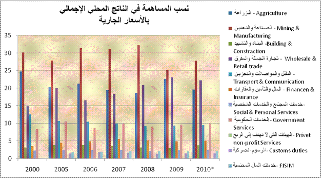 الناتج المحلـي الإجمالي بسعر السوق حسب القطاعات  بالأسعار الثابتة لعام 2000 Gross Domestic Product At Market Prices By Sector , At Constant Prices Of 2000
