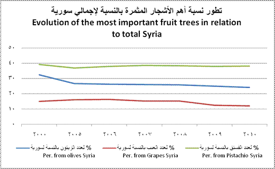 | النسبة إلى إنتاج سورية % | 7.5 | 7.9 | 9.3 | 10.1 | 11.7 | 12.3 | 9.1 | Per. Pro. from Pro. Syria % | |||