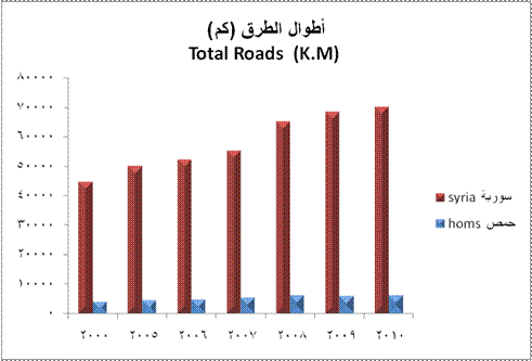 | إجمالي أطوال الطرق الاسفلتية (كم) | 3867 | 4237 | 4449 | 4646 | 4767 | 5144 | 5390 | Total Asphalted Roads (K.M) | |||