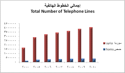 | إجمالي عدد الخطوط الهاتفية (خط) | 147041 | 272343 | 309490 | 333489 | 359159 | 375623 | 389802 | Total Number of Telephone Lines (telephone) | |||