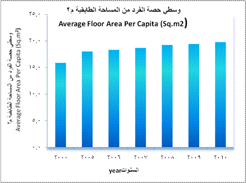 | وسطي حصة الفرد من المساحة الطابقية (م2) | 15.9 | 18.0 | 18.3 | 18.7 | 19.2 | 19.4 | 19.8 | Average Floor Area Per Capita (m2) | |||||