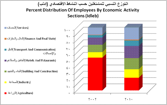 | التوزع النسبي للمشتغلين حسب النشاط الاقتصادي والجنس (%) | 2002 | 2010 | Percent Distribution Of Employees By Economic Activity Sections And Sex (%) | |||||