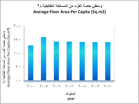 | وسطي حصة الفرد من المساحة الطابقية (م2) | 12.9 | 16.0 | 14.3 | 14.3 | 14.2 | 14.1 | 14.1 | Average Floor Area Per Capita (m2) | |||||