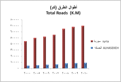 | إجمالي أطوال الطرق الاسفلتية (كم) | 2850 | 3785 | 4010 | 4232 | 4261 | 4424 | 4710 | Total Asphalted Roads (K.M) | ||||||||||||