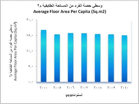 | وسطي حصة الفرد من المساحة الطابقية (م2) | 16.8 | 15.4 | 15.8 | 15.7 | 15.5 | 15.4 | 15.1 | Average Floor Area Per Capita (m2) | |||||