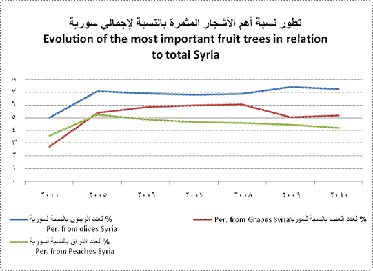 | النسبة إلى إنتاج سورية % | 19.4 | 46.1 | 29.2 | 32.1 | 43.9 | 46.4 | 47.3 | Per. Pro. from Pro. Syria % | |||