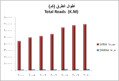 | إجمالي أطوال الطرق الاسفلتية (كم) | 1234 | 1513 | 1521 | 1530 | 1531 | 1563 | 1579 | Total Asphalted Roads (K.M) | |||