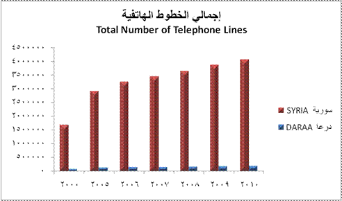 | إجمالي عدد الخطوط الهاتفية (خط) | 59281 | 111805 | 125536 | 137376 | 148103 | 162557 | 173316 | Total Number of Telephone Lines (telephone) | |||