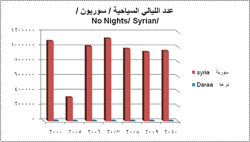 | عدد الليالي السياحية / سوريون / | 3259 | 500 | 978 | 1627 | 1780 | 1567 | 687 | No. Nights /Syrian/ | |||
