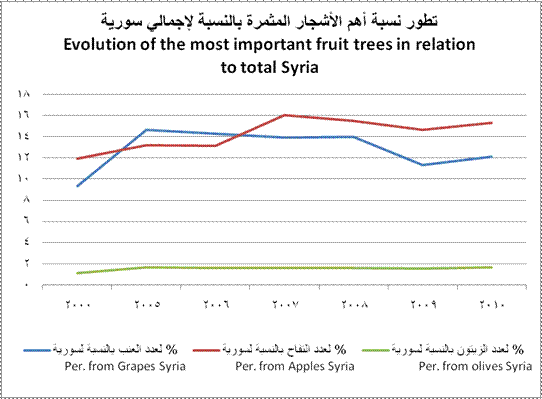 | النسبة إلى إنتاج سورية % | 15.8 | 4.5 | 5.6 | 5.3 | 4.3 | 3.5 | 2.8 | Per. Pro. from Pro. Syria % | |||