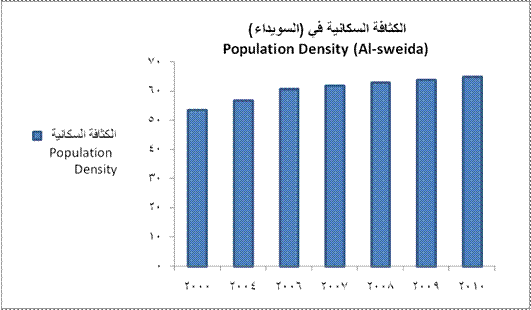 | الكثافة السكانية (نسمة/كم2) | 54 | 57 | 61 | 62 | 63 | 64 | 65 | Population Density ( per km2 ) | |||