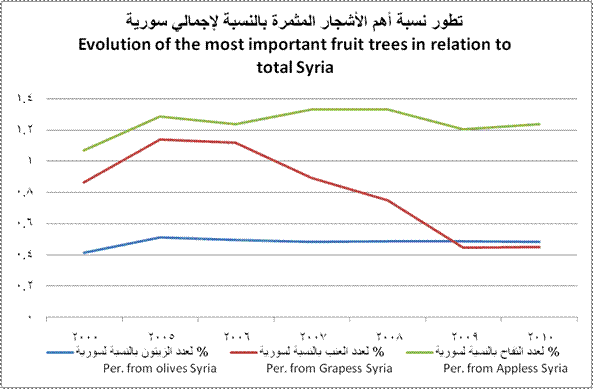 | % لعدد التفاح بالنسبة لسورية | 1.1 | 1.3 | 1.2 | 1.3 | 1.3 | 1.2 | 1.2 | %from apples Syria | |||