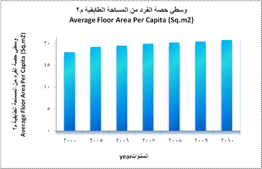 | وسطي حصة الفرد من المساحة الطابقية (م2) | 18.0 | 19.3 | 19.6 | 20.0 | 20.3 | 20.5 | 20.9 | Average Floor Area Per Capita (m2) | |||||